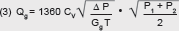 The coefficient of flow Cv expresses the rate of flow in gallons per minute at 60°F water with a pressure drop of 1 psig across the valve.The Cv coefficients for the various types and sizes shown in the tables, have been determined from actual flow tests. Note: Kv is the metric equivalent of Cv. KV = CV x 0.85 For Liquids: ![]() ![]() Where QL = Flow in U.S. gallons per minute. Δ P = (P1–P2) Pressure drop in psi. GL = Specific gravity of liquid (water = 1 at 60°F). For Gases: ![]() ![]() Where Qg = Volumetric flow of gas (SCFH). Gg = Specific gravity of gas at standard conditions. (air at atmosphere and 60°F = 1) T = Absolute temperature of gas (°F + 460). Note: For gas, max. ΔP = 1⁄2 P1, and min. P2 = 1⁄2 P1, and P1, P2 are absolute pressures (psia) |